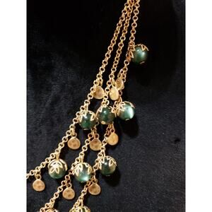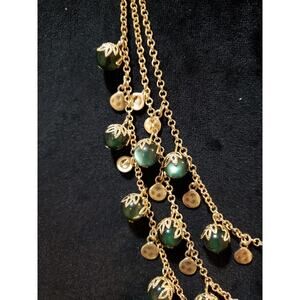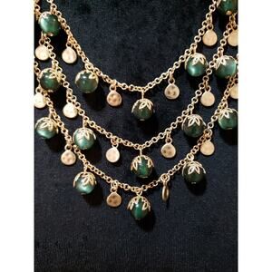 Women Gold Tone 3 Strand Olive Faux Pearls Coins Drop Statement Necklace Jewelry.