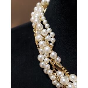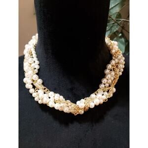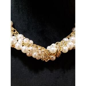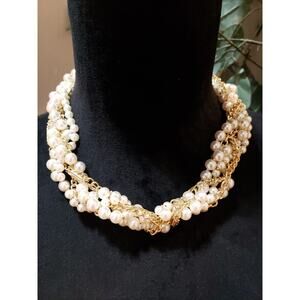 Women Gold Tone Layered Ivory Faux Pearls Twisted Chains Collar Necklace Jewelry.