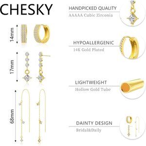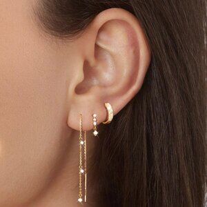 DAINTY EARRINGS SET: Set contains: CZ hoop earrings, CZ stud earrings, CZ dangle chain earrings. The handmade earrings have a trendy and delicate design. Our fashion earrings accessories are perfect for your daily life, adding elegance and charm