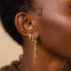 💫 Women Gold Trendy Dangle Earrings 14K Dainty Threader Double Piercing Jewelry