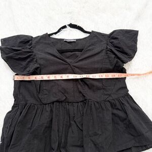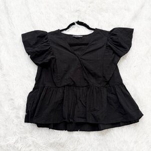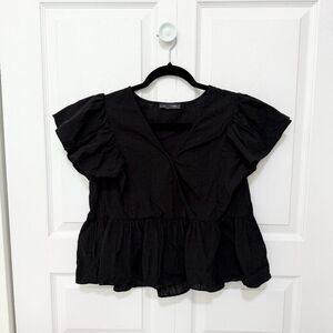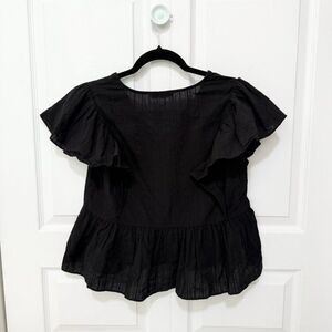 Women Grade & Gather Women V-Neck Flutter Sleeves Plain Top in Black Size Small