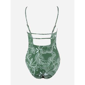 Women Green Floral Square Neck Cutout Back Tummy Control with Adjustable Straps