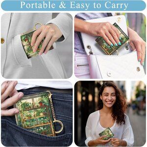 【Unique Design】The small women wallet includes 1x removable keychain, 1x small wallet. It is designed with various unique art: green pot plants, which are natural and fashionable. You can choose them to express your personality and pursuit.