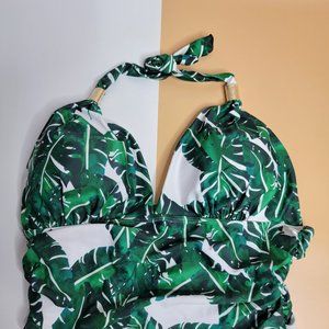 Women Green V Neck One Piece Tummy Control Ruched Swimwear size X-Large NEW