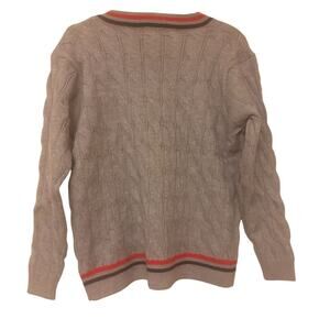 Elevate your wardrobe with this charming women's grey V-neck sweater, perfect for adding a touch of preppy style to any outfit! The sweater features a classic V-neck design with a stylish red and navy blue outline that adds a pop of color. Crafted from a cozy blend of wool and acrylic, this sweater offers both warmth and comfort, making it ideal for layering during cooler months.
