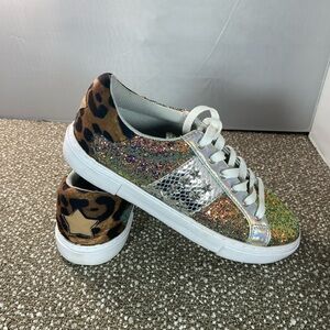 Sparkle with every step in these dazzling Women’s sneakers. Featuring a vibrant glitter design, these shoes are perfect for adding a touch of fun to any outfit. Pre Owned excellent condition.