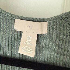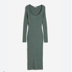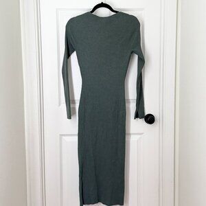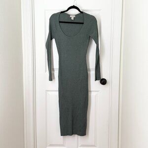 Women H&M Crew Neck Ribbed Knit Bodycon Midi Dress in Dusty Green Size Medium