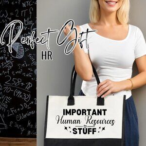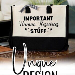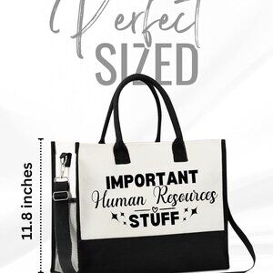 Women HR Gifts Canvas Tote Bag with Zipper Pouch Shoulder Strap Travel