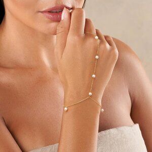Women Hand Chain Bracelet Dainty Pearl Sterling Silver Gold Plated Adjustable
