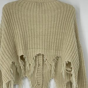 Women Hayden Los Angeles L Crochet Crop Shark bite Fringe Cardigan Sweater 3745