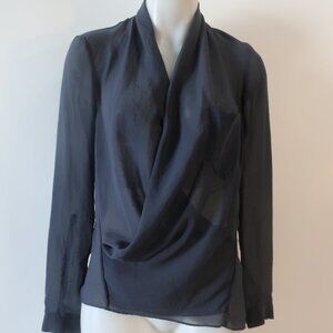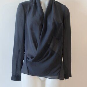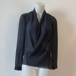 Women Helmut Lang Navy Blue Chest Pocket Surplice V-Neck Blouse Top P US/XS