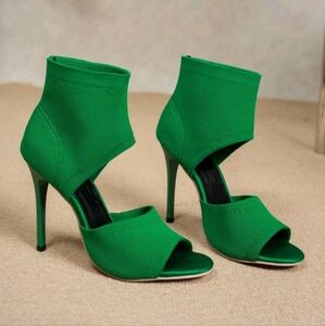 Women High Heel Sandals, Knitted Elastic Wide Strap Peep Toe Heels Fashionable