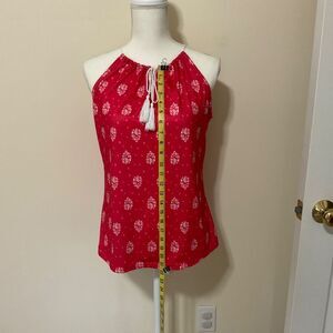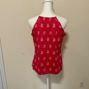 Women High Neck Floral Print Sleeveless T-Shirt Tank Top Red Medium