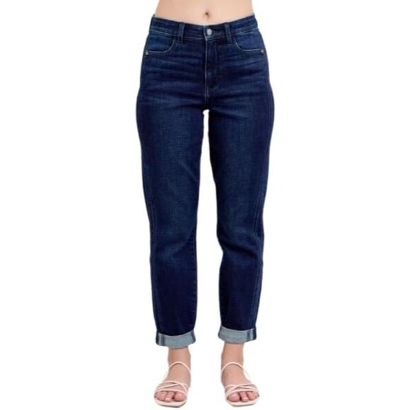 Features: Flattering high waist design to accentuate your silhouette, with a relaxed, slightly loose boyfriend fit. Comes with versatile cuffed at 27 inches or uncuffed at 30 inches options for styling your way. Soft, stretchy denim blend (93% cotton, 6% polyester, 1% spandex) for all-day comfort.