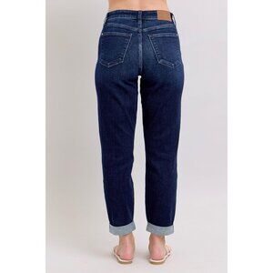 Women High Waist Boyfriend Jeans Stretchy Relaxed Fit Cuffed Uncuffed