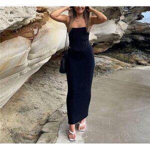 Women High Waist Knit Long Maxi Skirt Stretchy Black