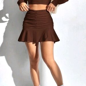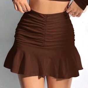 Women High Waist Pleated Ruffle Hem Short Skirt, Fashion Style