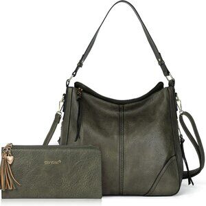 Women Hobo Crossbody Bag Set PU Leather 2pcs Adjustable Strap Elegant