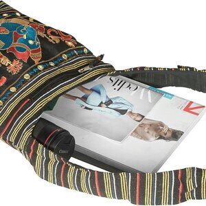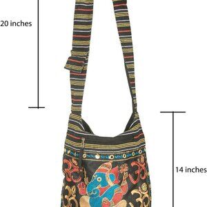 Women Hobo OM Black Cross Body Shoulder Bag Elephant Embroidered School Everyday