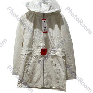 Women Hooded Rain Jacket, Vince Camuto, M,L, White, NWT