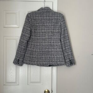 Excellent condition House of Harlow 1960 Blazer. Size Small. Various shades of navy blue and white in a tweed design/pattern. Long sleeves. Fully lined. Dry clean only. Perfect for casual wear or to be dressed up. Super versatile closet staple. Double breasted