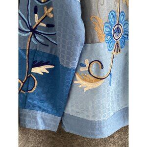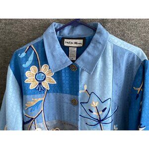 Women Indigo Moon Cotton Silk Embroidered Flower Patchwork Blue Teal Jacket M