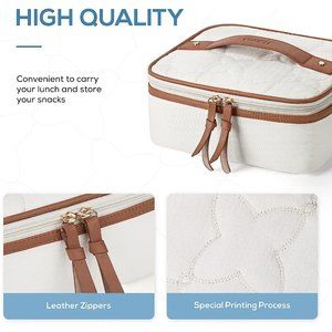 This lunch bag is lined with Food-grade thickened PEVA material, padded with high-density EPE foam for keeping food stay cold/warm/fresh for up to 12 hours! Easy to wipe clean