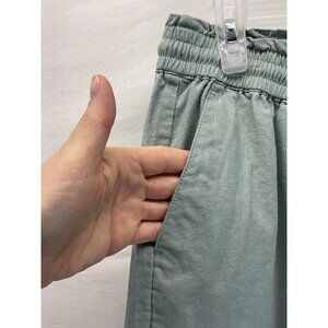 Women J. Crew High Waist Wide Leg paper bag Linen pockets Pant Green size 10