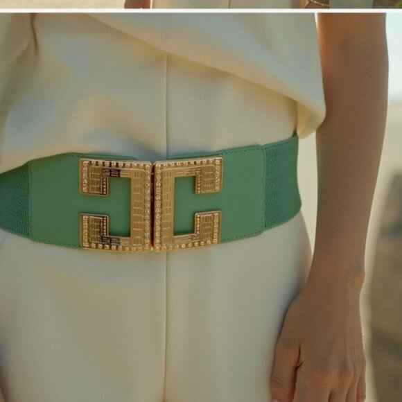 Make a statement with our Women's Jade Teal Green Faux Leather and Elastic Waistband Fashion Belt. This versatile belt is designed to add a touch of style and sophistication to your outfit, whether you're heading to a party, work, or a special event.