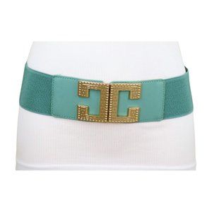 Women Jade Teal Elastic Wide Fashion Belt Hip Waist Gold Metal C Buckle Fit S M
