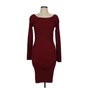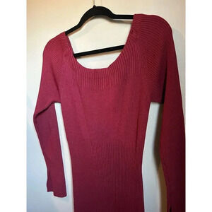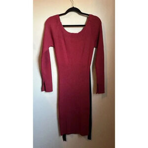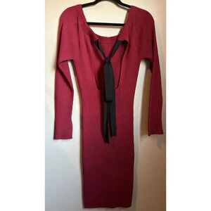 Women Jason Wu Red Long Sleeve Knit Sweater Dress, Black bow Tie back opening, L