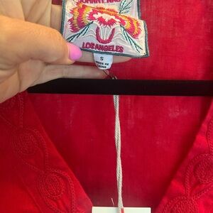 brand new with all packaging and tags- beautiful oversize vneck embroidered top with side slits