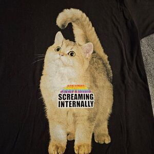 Women Jrs Small Cat Tee T Shirt Screaming Internally Cute Kitten Black Matter S
