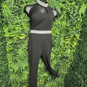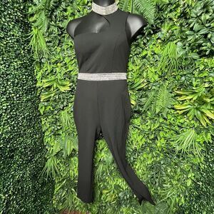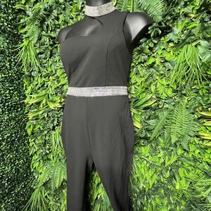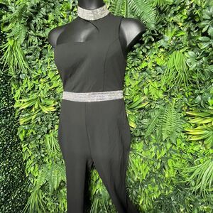 Women Jumpsuit Large Black Pants High Neckline Stoned Accent Fitted Ipoe 1710