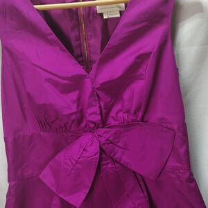 Women Kate Spade Accent Bow Fuchsia Silk Sleeveless Rear Zip Casual Dress Size 8