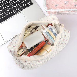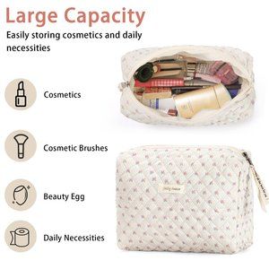 Women Kawaii Floral Cosmetic Large Travel Toiletry Bag Quilted Cosmetic Pouch