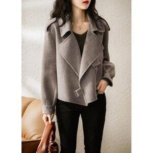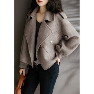 【STYLISH DESIGN】The womens cropped pea coat features notched collar, long-sleeved, drop shoulder, open-front, one side pockets, loose fit, solid color, crop length, oversized style make this womens short wool coat flattering and stylish. This notched lapel peacoat is perfect for the woman who wants to keep warm and charming all the time. Your Best Choice!