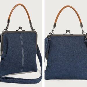 Women Kiss Lock Purse Polyester Small Crossbody Tote Bag for Daily Use