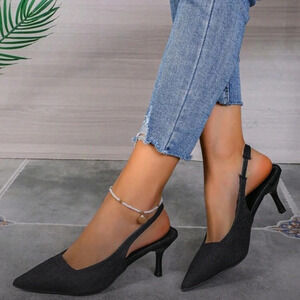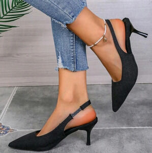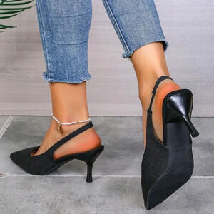 Women Kitten Heel Shoes, Solid Color Elastic Strap High-Heeled Sandals