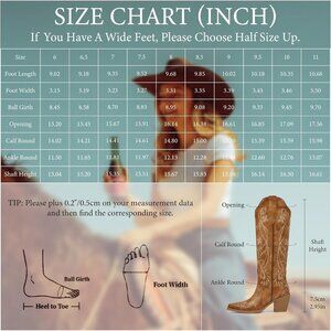 Stable and Comfortable: The cowboy boots for women feature a soft and comfortable ultra-fine lining, and these wide calf cowgirl boots womens come with almond heads and a stable mid thick heel (7.5cm/2.95in), allowing you to wear them comfortably during long and long-distance walks, maintaining an elegant stride