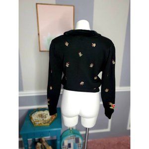 Women Knit Cardigan, 80s Cardigan, Floral Cardigan