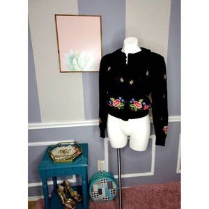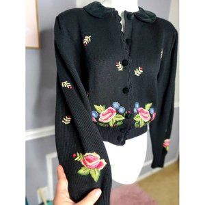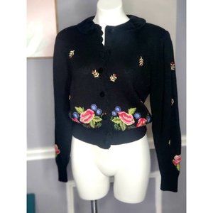 Herman Geist Floral Cardigan with velvet collar. Great Condition!