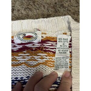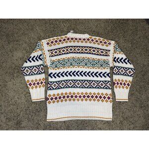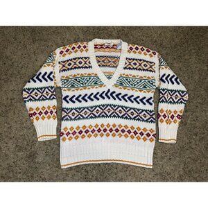 Women Knit Thick Sweater Deep Vneck Fairisle Nordic Icelandic Scandi Cabin M