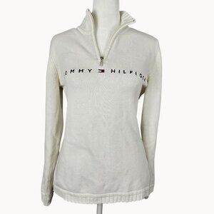 Women Knit Winter Fall Harvest Casual 3/4 Zip TurtleNeck Sweater TommyHilfiger L
