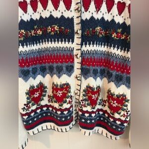Women Knitted Cardigan Sweater Large Red Hearts Heirloom Collectibles Vintage