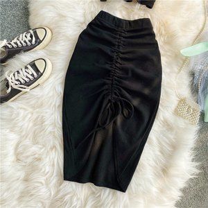 This Women Knitted Short Tops + Drawstring Bodycon Skirt is made of polyester, Synthetic fiber. Soft, comfy, and ultra-stretch for a casual fitted look that is sure to get attention for all the right reasons.