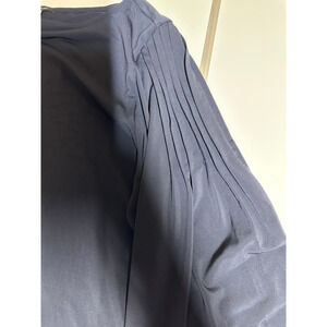 This is a very cute navy-blue top from Ann Taylor, size L. The sleeve is about 3/4 long, sheer material so floral feeling. Body is not see-through; however, sleeves are a bit because they are just one-thin layer of sheer. Open to bundle and offers.