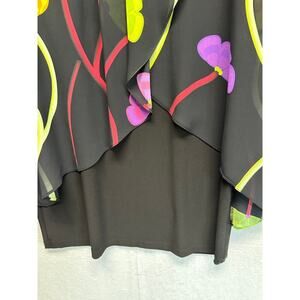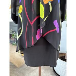 Women LS Black Floral Midi Dress 8 Boho Sheer Lined Quiet Luxury Asymmetric