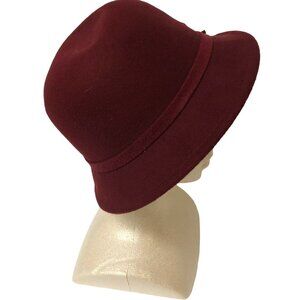 Women Lady Fedroas Hat Burgundy Fashion Dome Cap Flower 100 % Polyester 57CM