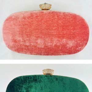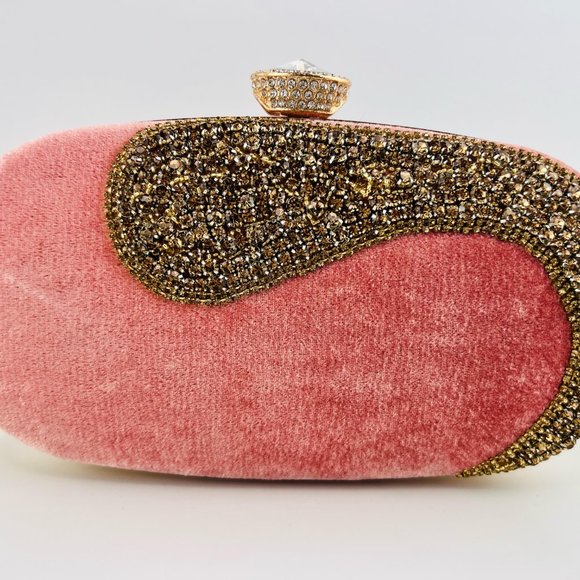 Women Lady Pink Gold Gemstones Clutch Purse Detachable Handle Wrist Crossbody